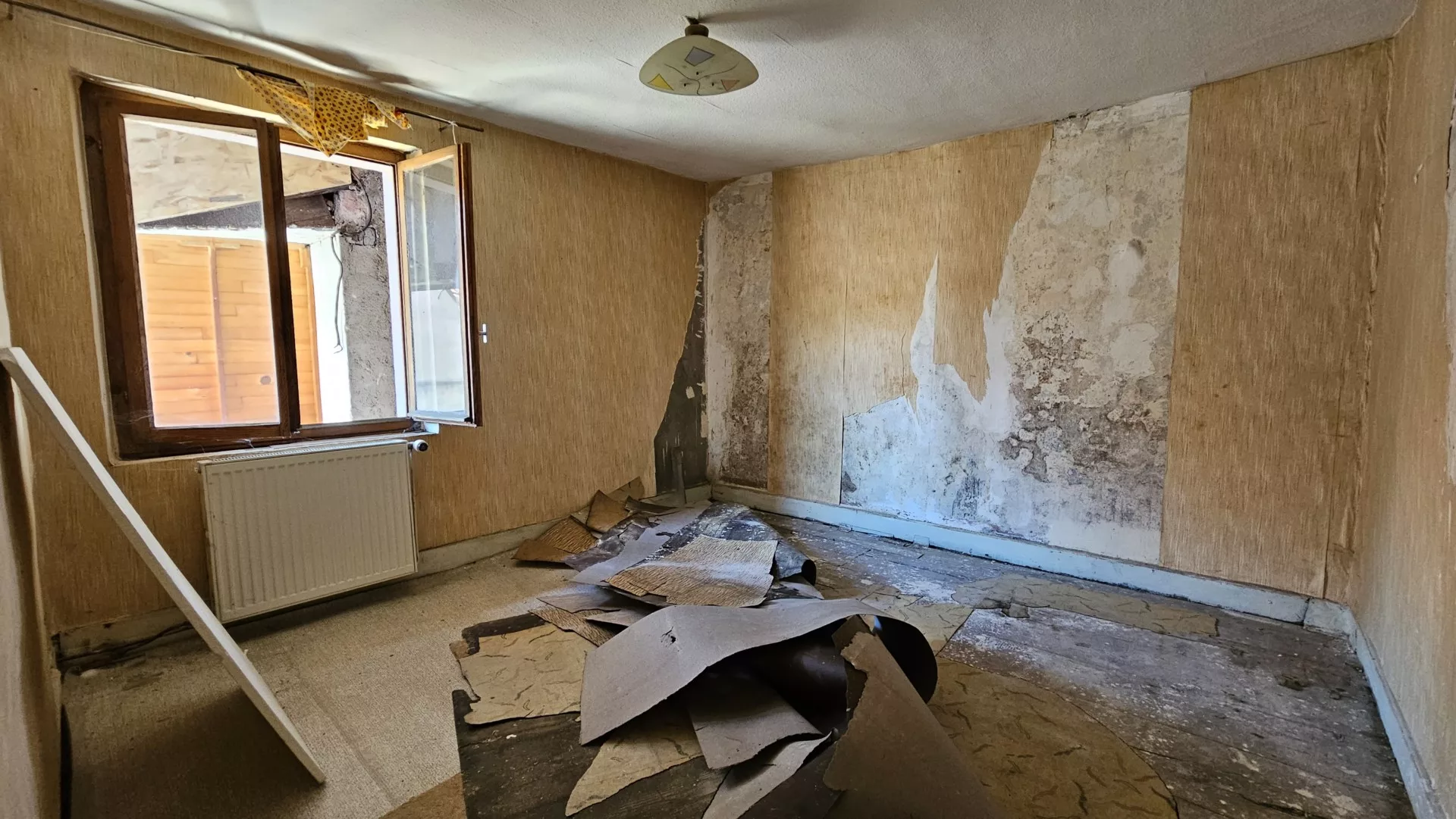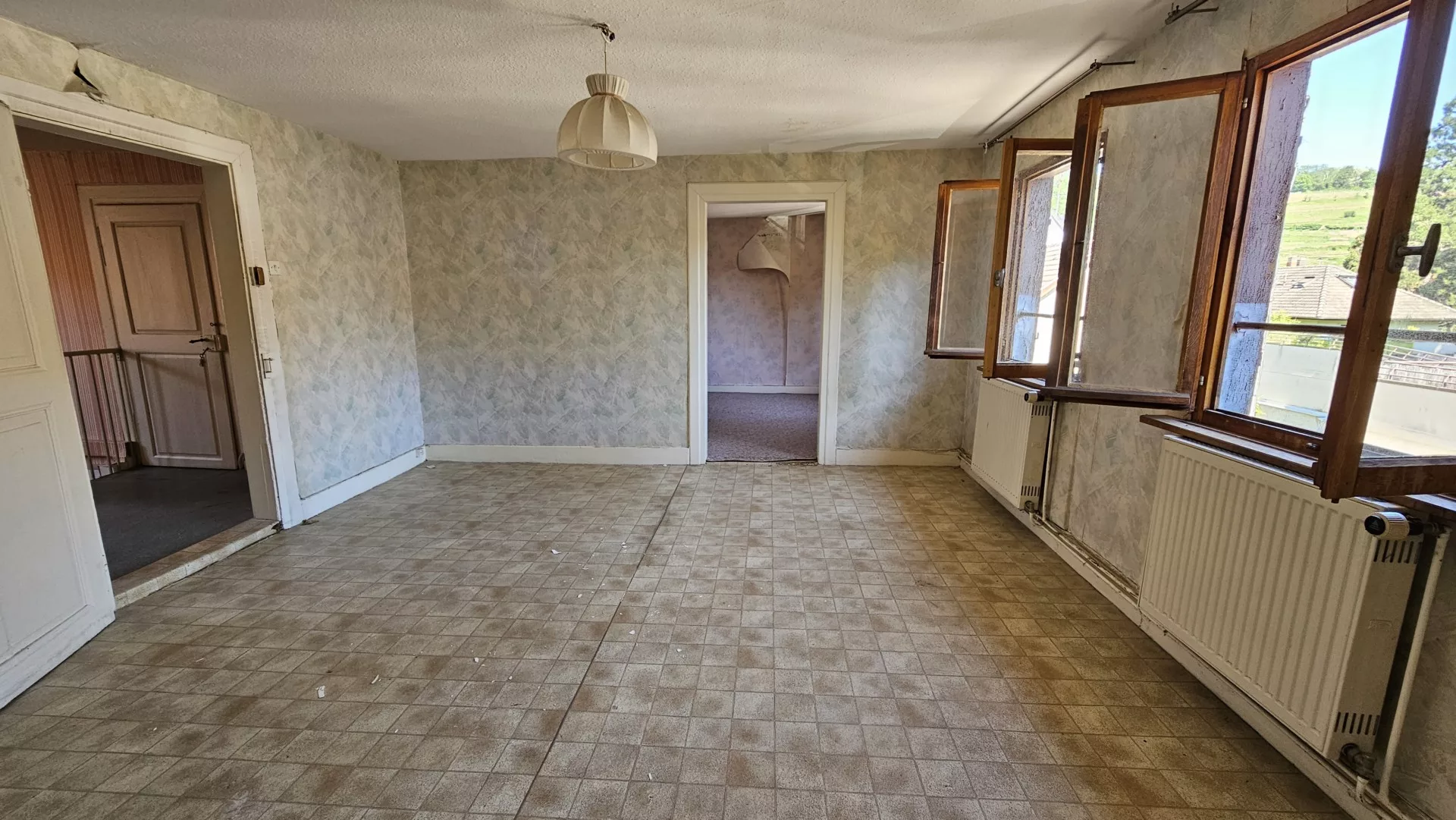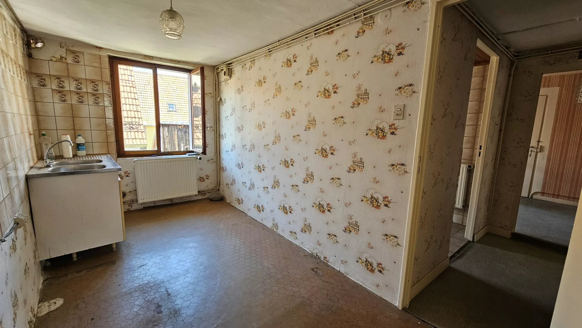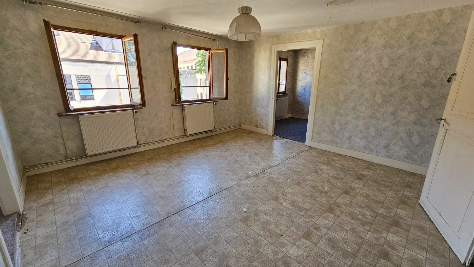 À GUEBWILLER, au centre-ville, situation idéale, découvrez un appartement à rénover de 74,26 m² loi Carrez, au 2ème et dernier étage d’une petite copropriété bénévole (2 lots principaux) du XVIIème siècle. Architecture traditionnelle. Possibilité d’aménager les combles. Quatre pièces de 16,36m², 16,20m², 11,95m² et 10,76m², une cuisine nue, une salle d’eau avec W.C. Aux combles, un grenier avec une belle hauteur sous plafond. Au sous-sol, une cave. Au sol, une pièce de rangement. À l’extérieur, une cour.